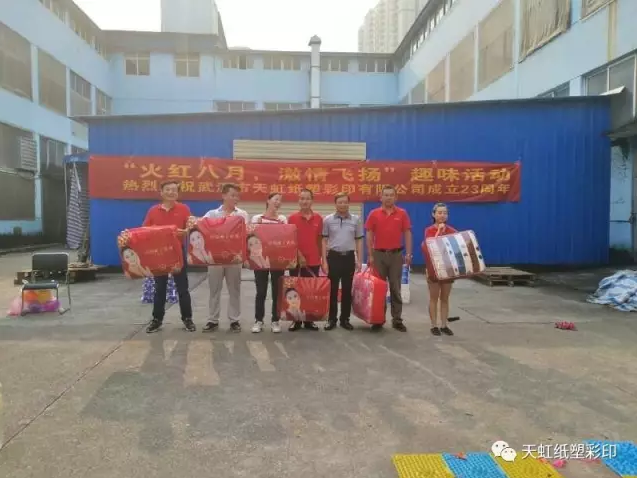 8月21日,在喜迎司慶23周年之際,武漢市天虹紙塑彩印有限公司組織舉辦了以“火紅八月,激情飛揚(yáng)”為主題的趣味運(yùn)動會,活動吸引了全公司6個部門36名選手參與,活動取得了圓滿成功。